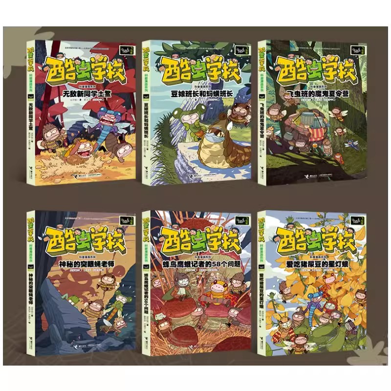 突眼蝇老师 魔鬼夏令营神秘 酷虫学校科普漫画系列飞虫班全套6册爱吃猪屎豆 星灯蛾天敌新同学土鳖豆娘班长和蚂蟥班长飞虫班
