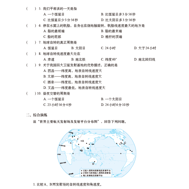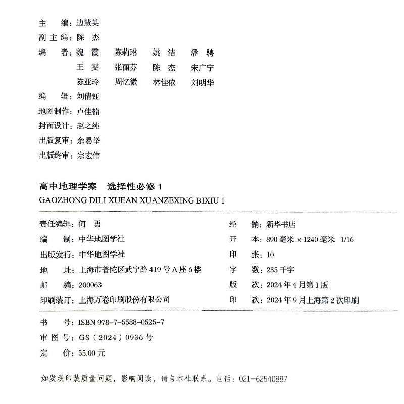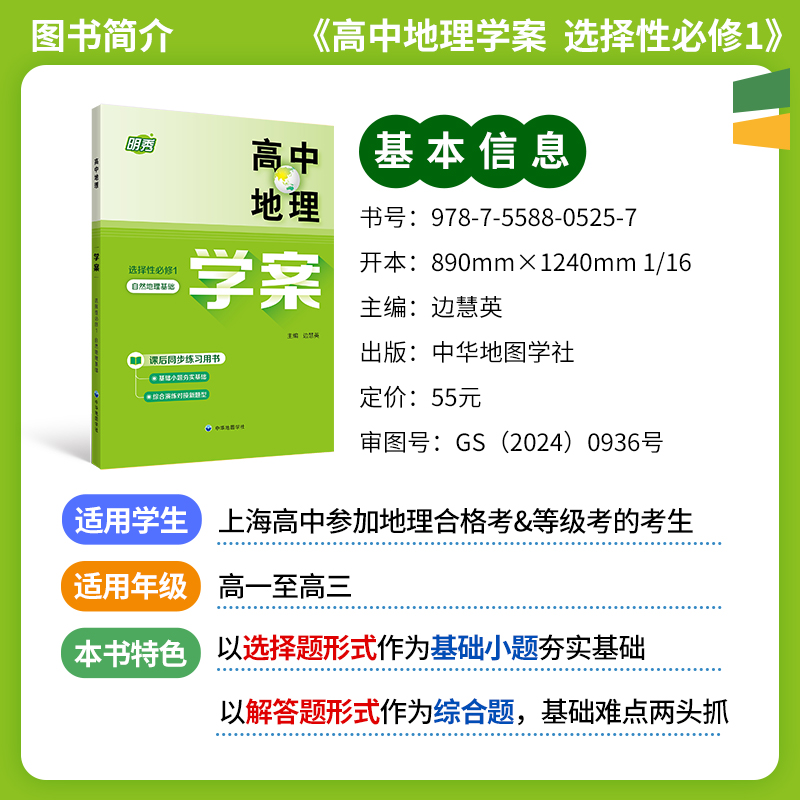 高中地理学案 选择性必修1 自然地理基础 课后同步练习用书 新版 同步上海高中地理教材 中华地图学社 上海直发