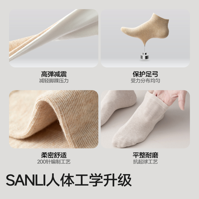短袜纯棉防臭吸汗运动男士 爆款 三利袜子男夏季 短筒船袜 7A抗菌