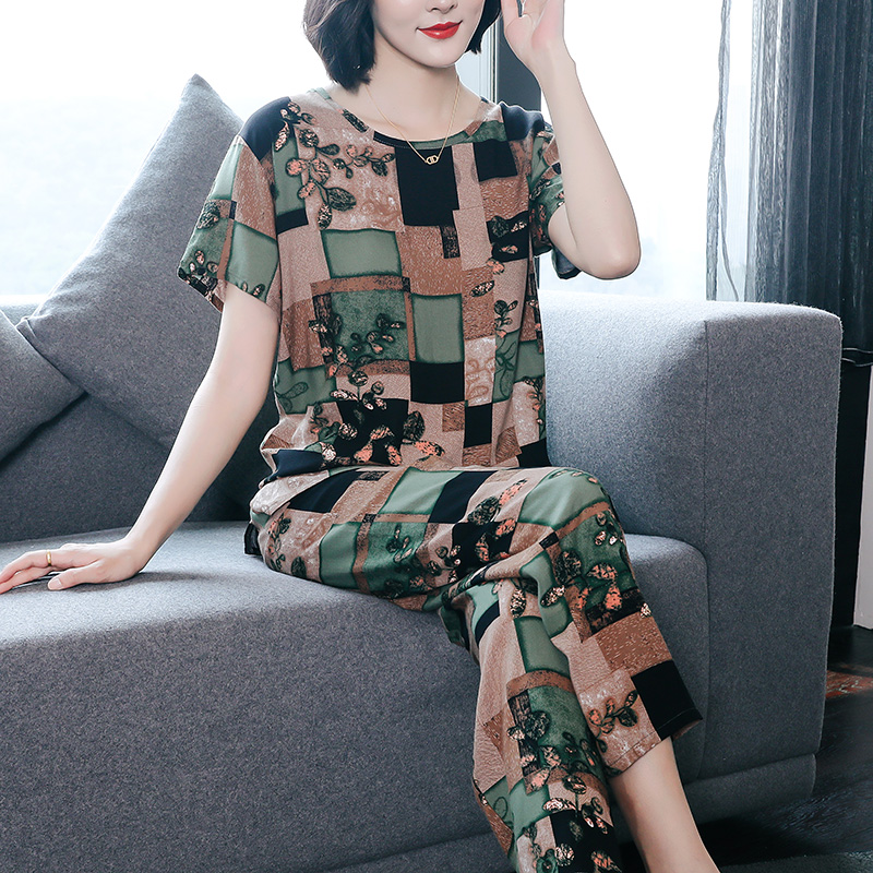 可外穿家居服套装 人造棉中老年人妈妈棉绸女士夏季 薄款 睡衣女短袖