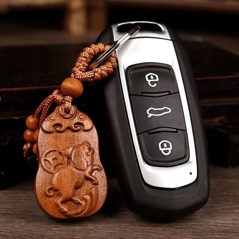 护身保平安桃木十二生肖钥匙扣挂件招财转运本命年吊坠汽车链挂饰