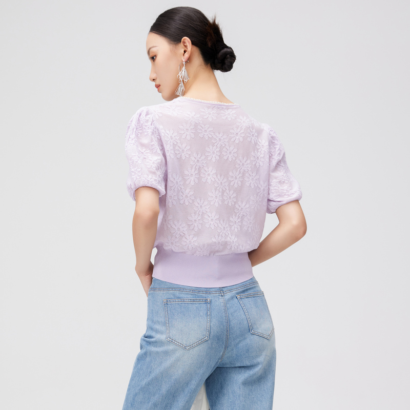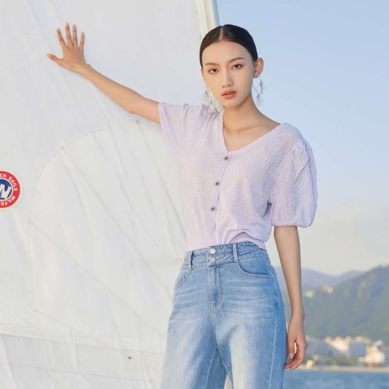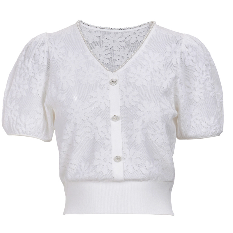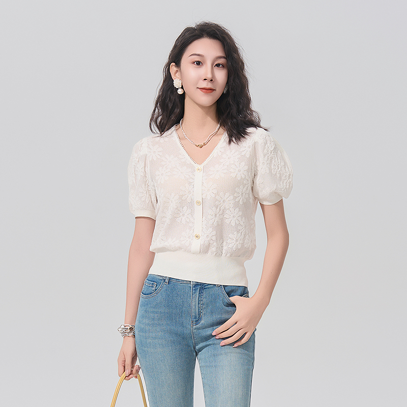 温柔风v领套头毛衣针织女短袖 曼诺比菲夏季 商场同款