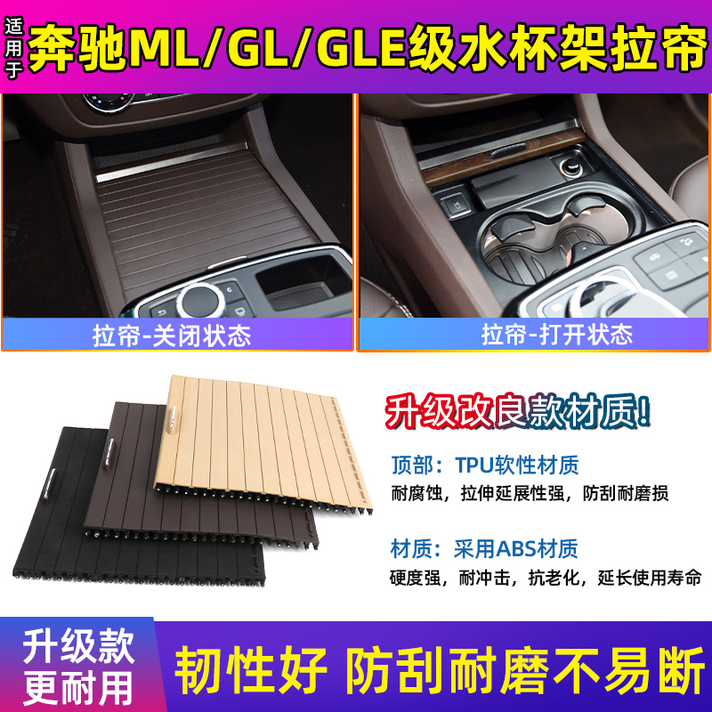 适用奔驰ML320 GLS450水杯架拉帘卷帘 GLE350中央扶手箱盖板GL400