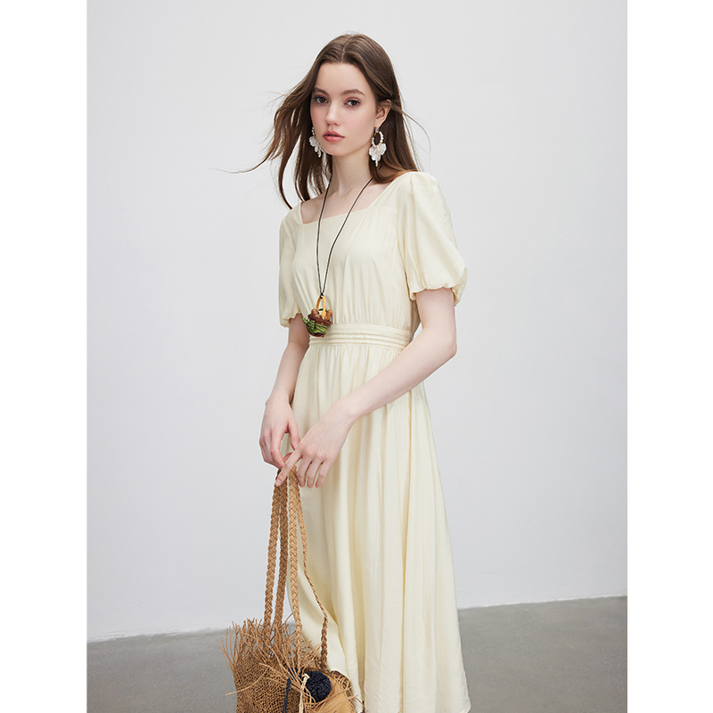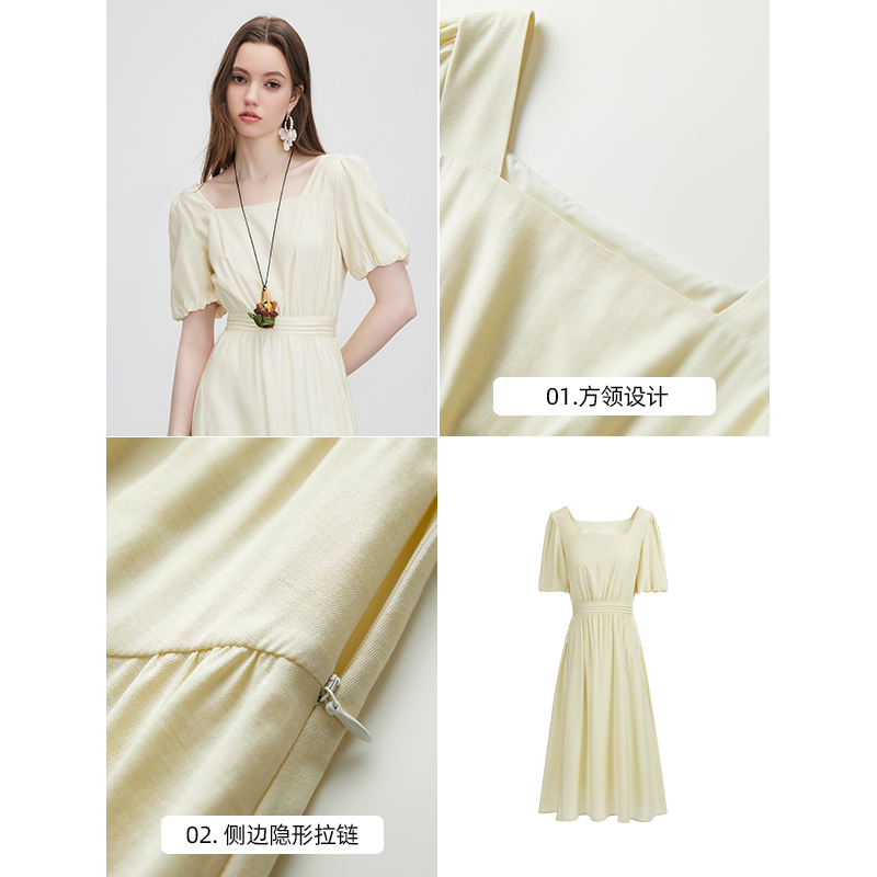 裙子 小众设计小个子法式 KBNE连衣裙女方领气质长裙2025夏季 新款