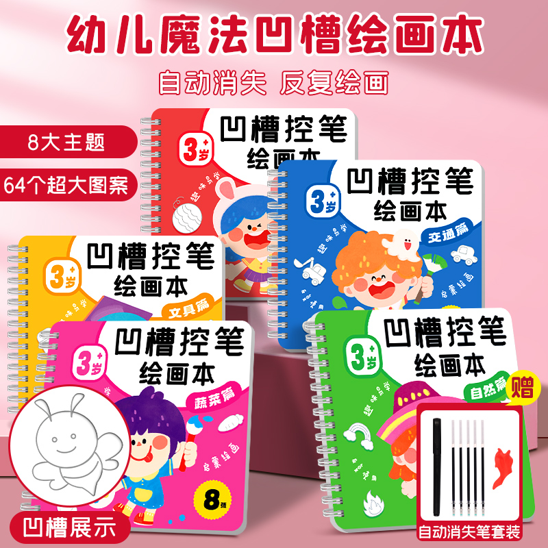 幼儿园凹槽控笔训练绘画本儿童涂颜色填充简笔画入门画画本描绘本