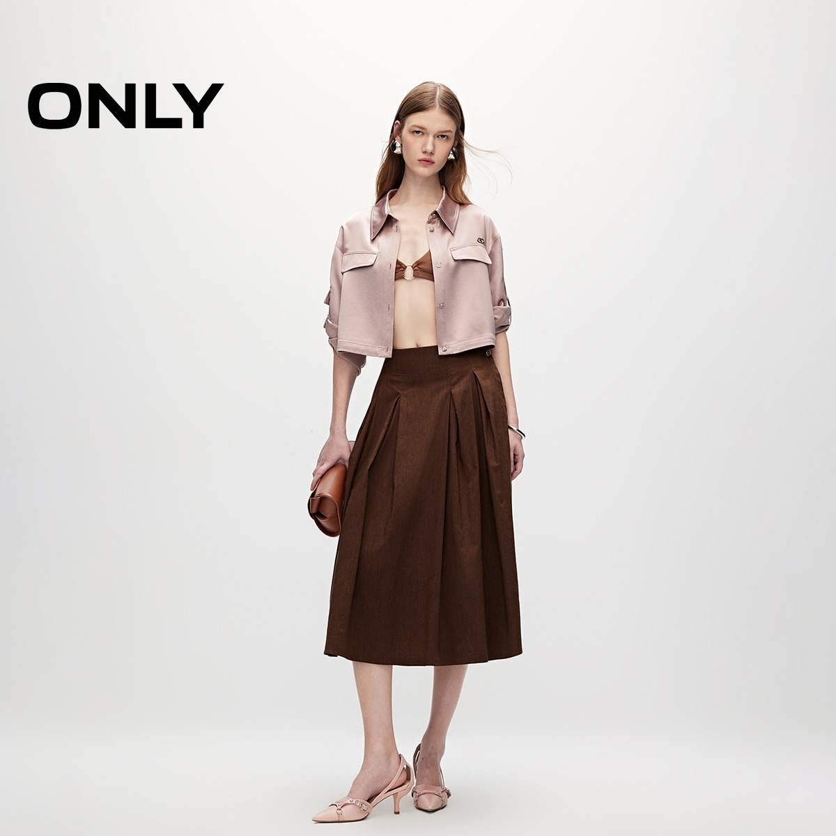 半身裙蕾丝边缎质半身裙1310814 新款 HM女装 25秋季