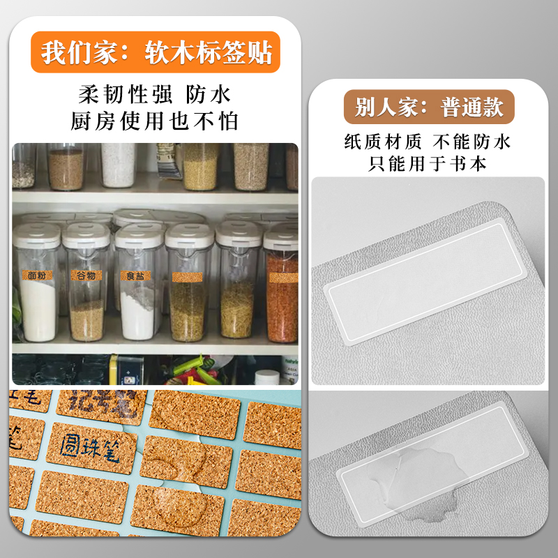 便签贴纸贴纸厨房防水防油自粘式 复古手账贴无痕不留胶记号分类标签贴口取纸姓名贴自粘贴纸粘性强软木标记