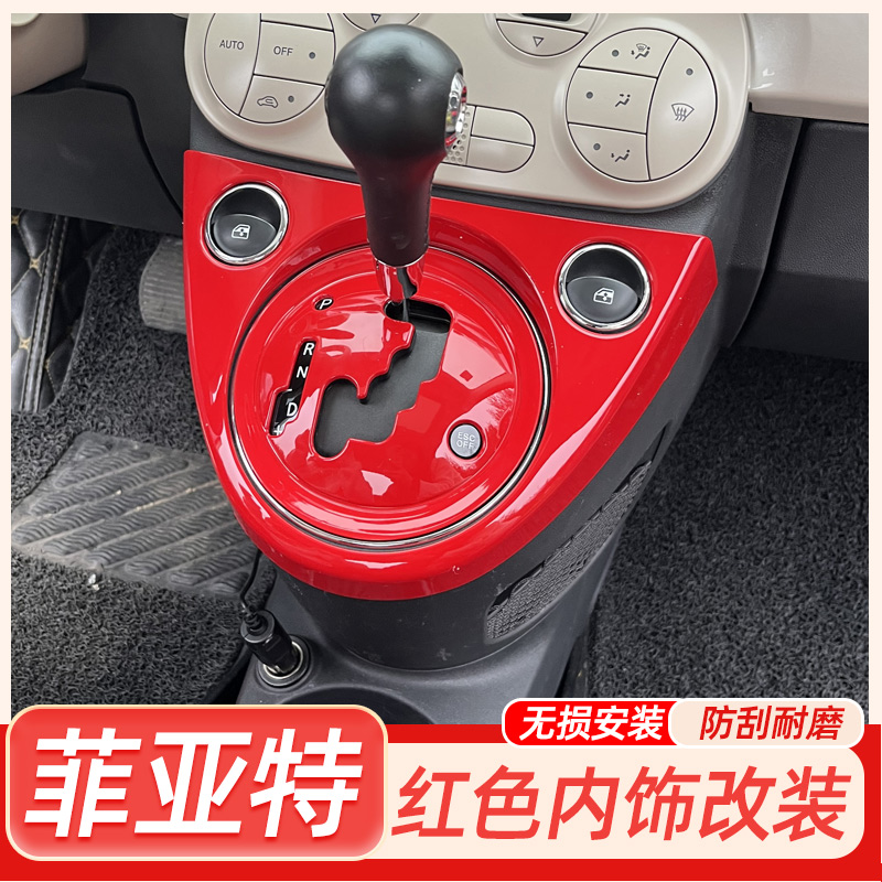专用菲亚特500改装 饰贴车窗红色改色贴 内饰贴中控手刹面板排挡装