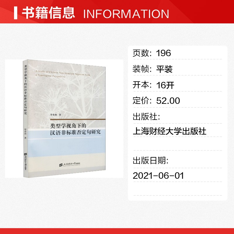 著 科学研究方法论文教 新华书店正版 类型学视角下 上海财经大学出版 管春林 图书籍 社 汉语非标准否定句研究