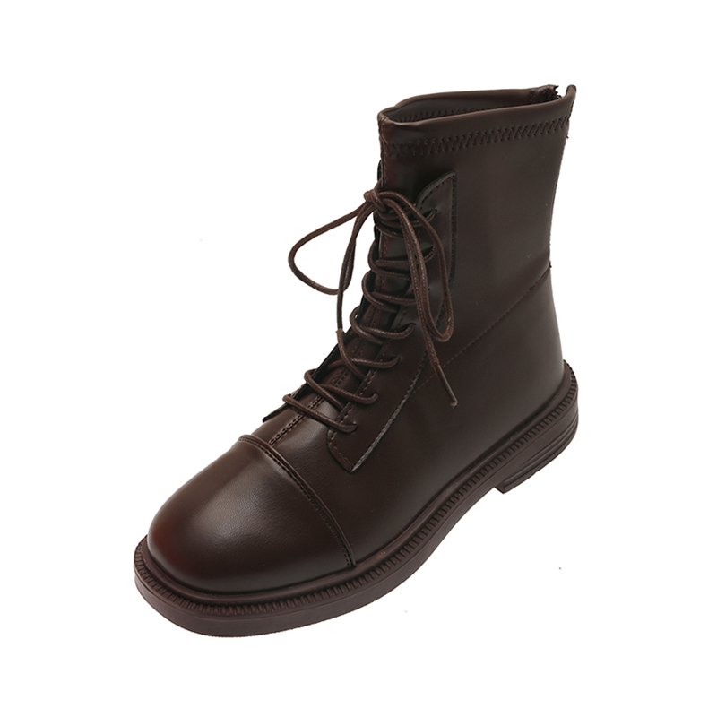 管短靴 棕色复古美拉德厚底堆堆靴子裤 回力马丁靴女2025秋冬季 新款