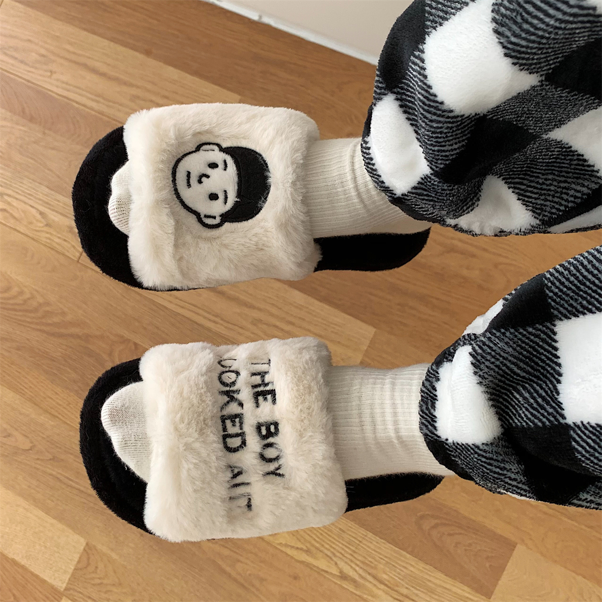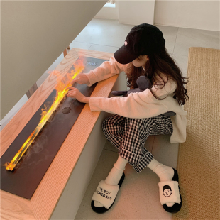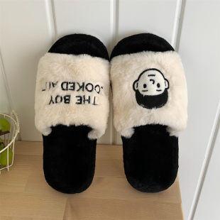 可爱室内软底防滑一字棉拖鞋 女冬新款 男 情侣居家保暖毛绒棉鞋 时尚