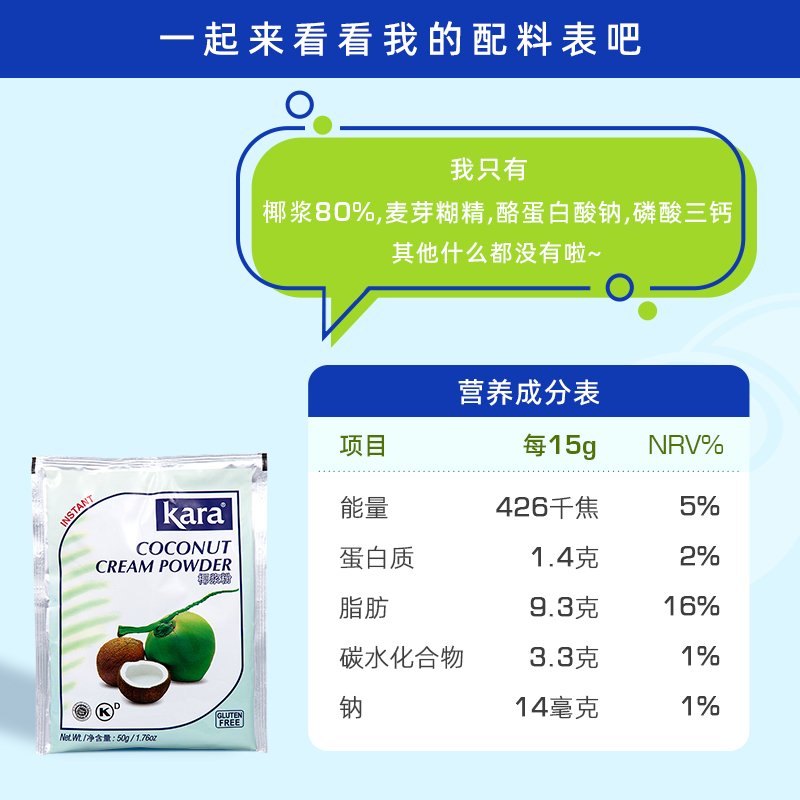 印尼进口Kara椰浆粉50g 12奶茶店专用生椰拿铁甜品烘焙咖喱原料