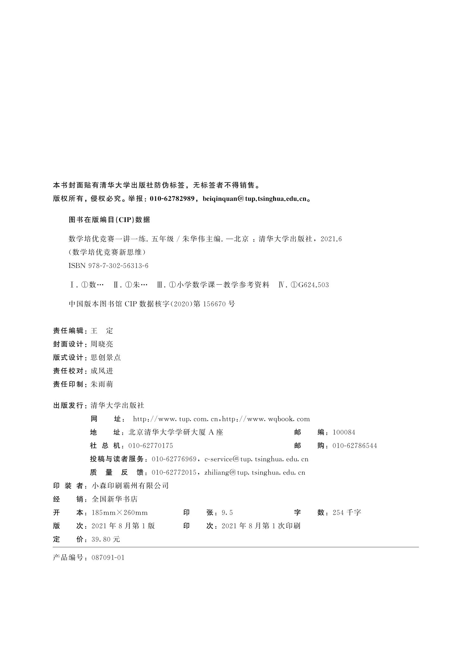 社数学培优竞赛新思维深圳中学校本教材奥数教程数学思维拓展 小学数学培优竞赛一讲一练5五年级朱华伟著清华大学出版 现货