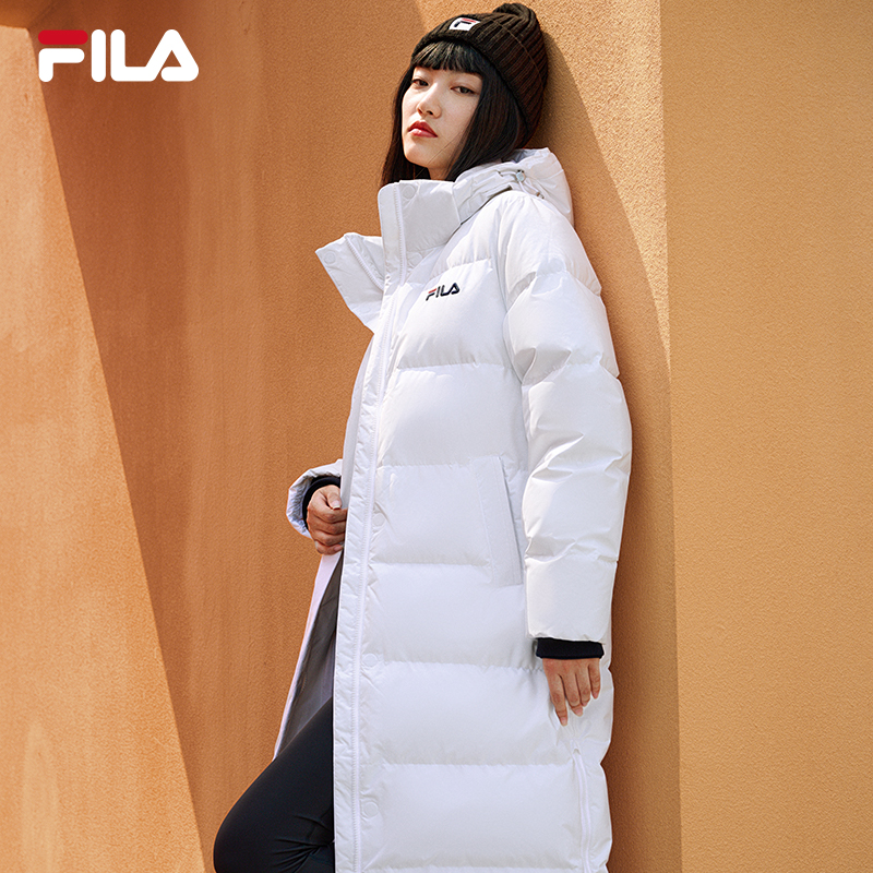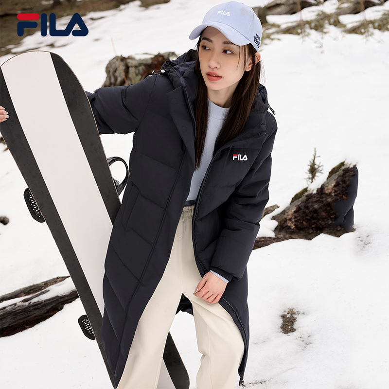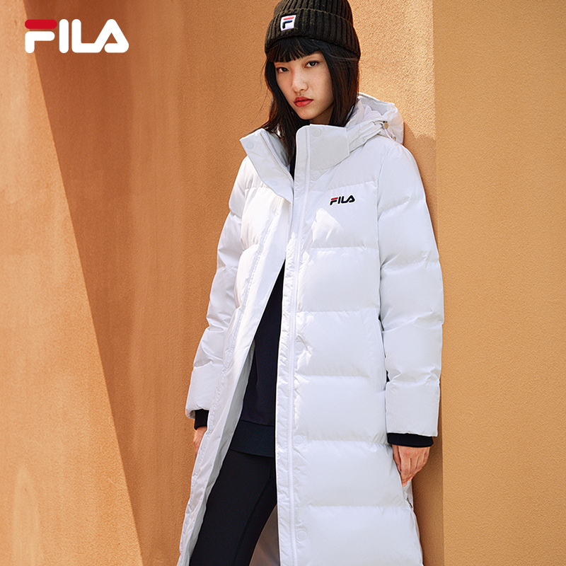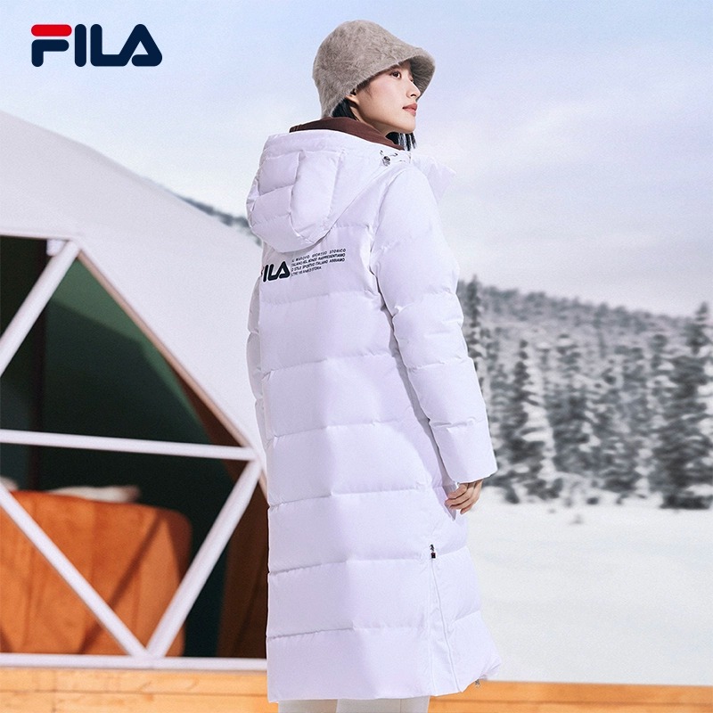 运动连帽保暖外套 新品 鹅绒FILA斐乐官方女子中长款 羽绒服2025冬季