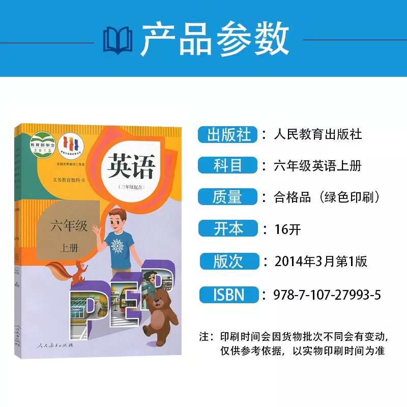 课本教材教科书人民教育出版 全新正版 人教部编版 三年级起点 社pep英语六年级上册英语课本六上英语 2025适用小学6六年级上册英语书