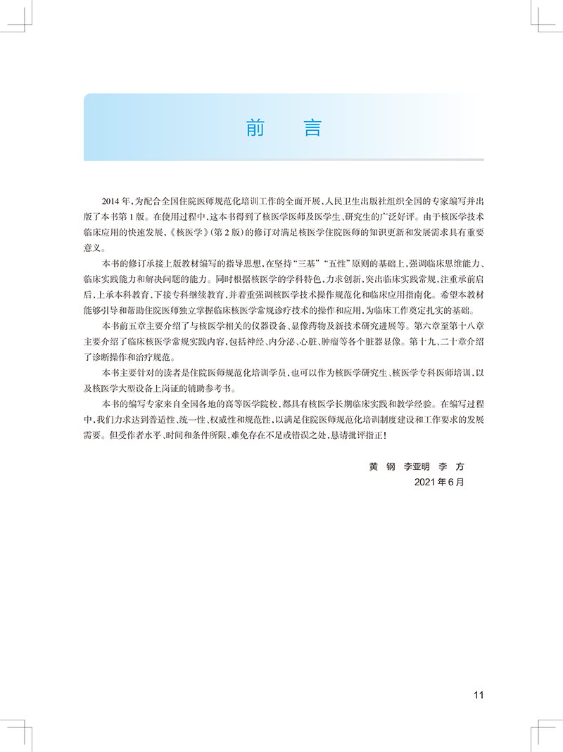 黄钢 李亚明 李方 核医学 人民卫生出版 国家卫生健康委员会住院医师规范化培训规划教材 主编 社9787117310581 第2版