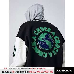 外套潮牌新款 水洗牛仔花卉重工刺绣短款 翻领夹克 Achock官方店