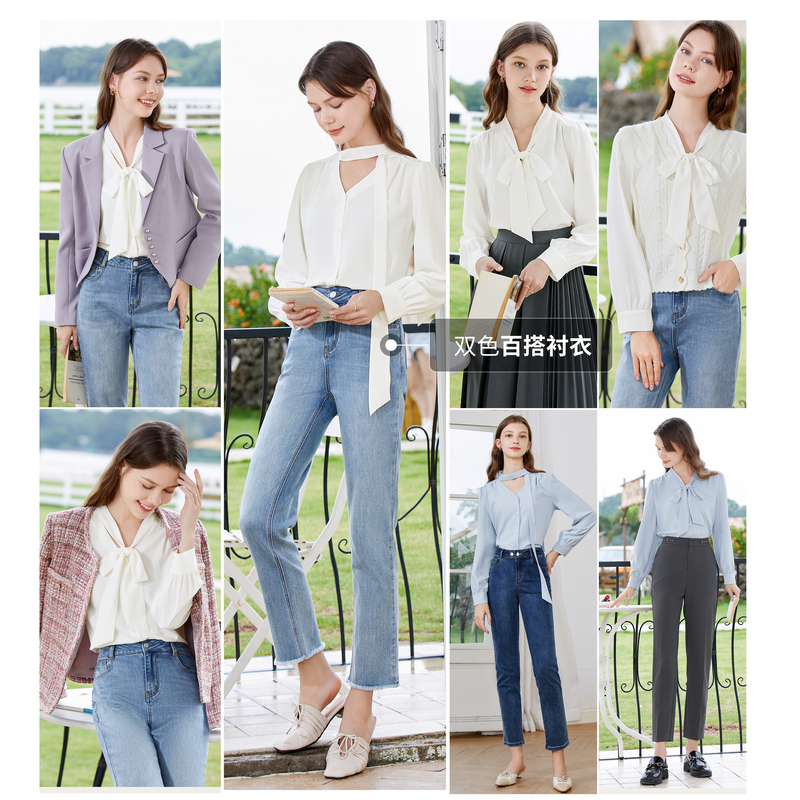 气质蝴蝶结飘带V领通勤职业衬衫 新款 衬衣 2024年秋装 百图女装