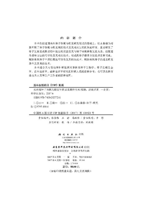 社9787030527721书籍KX 水曲柳种子休眠与萌发生理及其调控技术张鹏科学出版 书