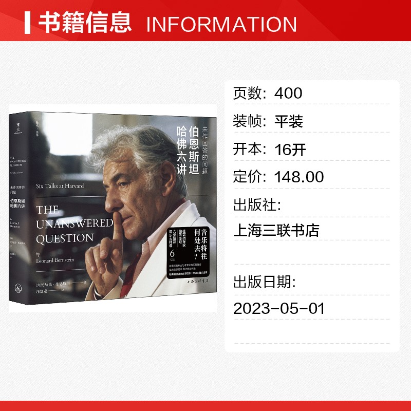 美 上海三联书店 图书籍 音乐 问题 伯恩斯坦哈佛六讲 新 著 伦纳德·伯恩斯坦 新华书店正版 未作回答 庄加逊 艺术 译