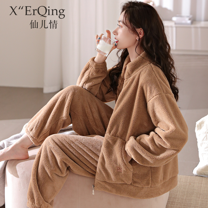 海岛绒可外穿家居服 简约薄款 睡衣女秋冬季 保暖珊瑚绒女士睡衣套装