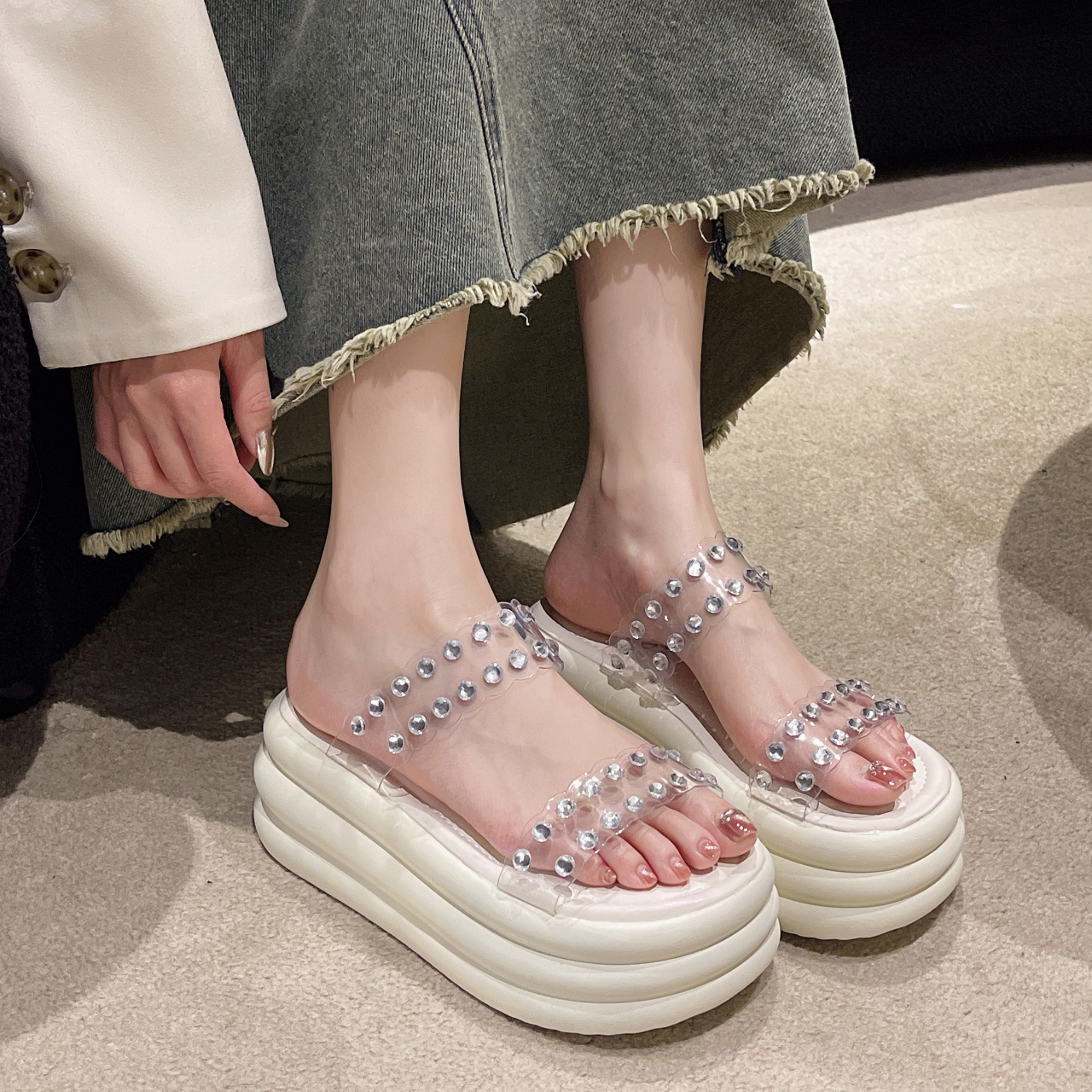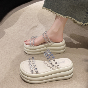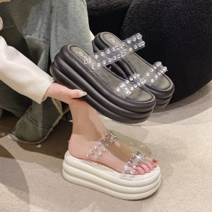 洋气透明凉鞋 外穿2025新款 仙女一字凉拖 女夏季 厚底增高踩屎感拖鞋