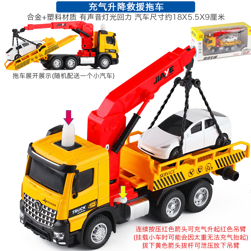 救援清障拖车平板运输警车工程卡车儿童仿真合金小汽车模型玩具车