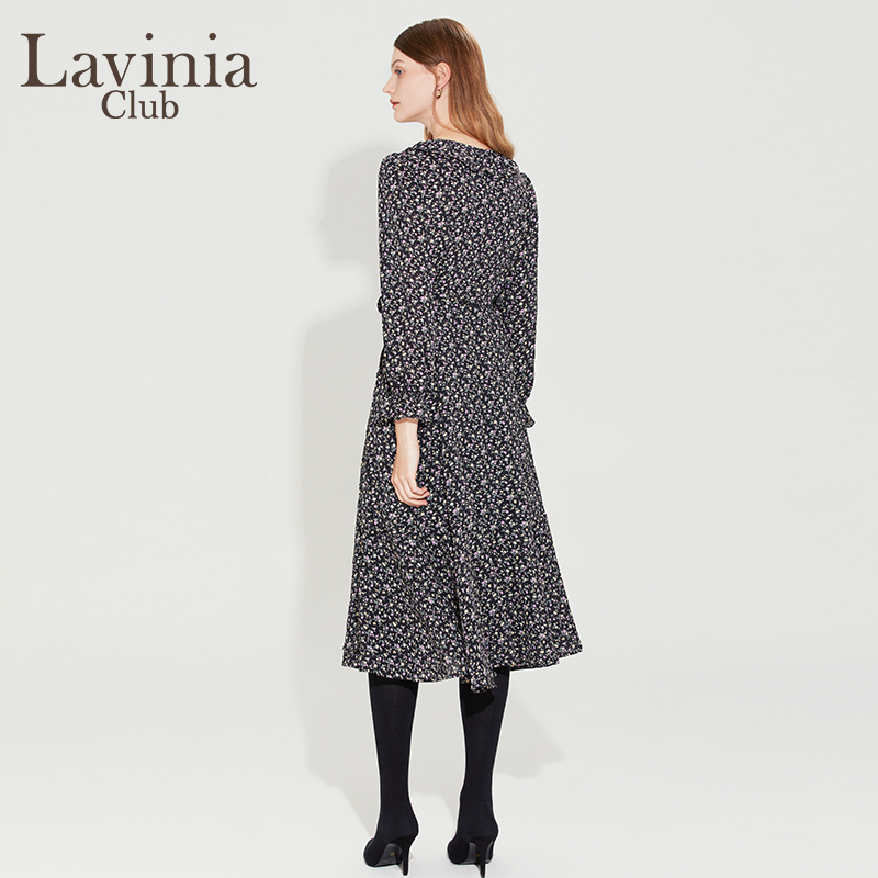 a02设计感拼接碎花连衣裙女2025秋季 驼色复古长裙通勤穿搭 新款