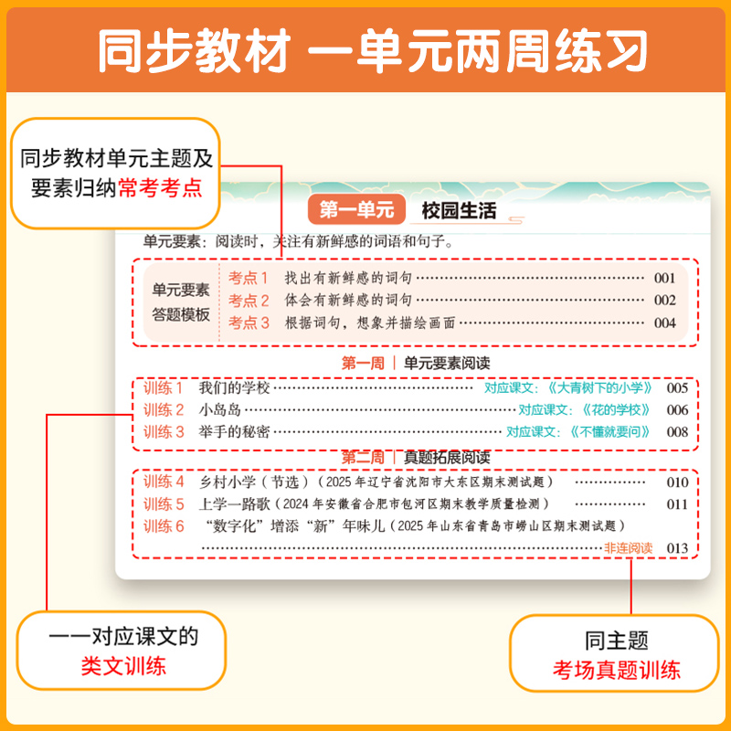 辅导资料书 教材考点专项阅读训练万能答题模版 2025秋新版 开心语文小学生同步阅读理解答题模板一二三年级四五六年级下册上册人教版