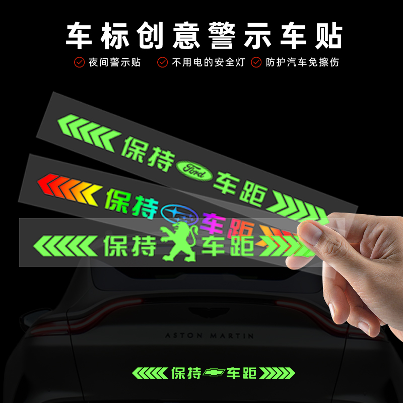 强反光车贴保持车距警示创意车尾保险杠后档玻璃装 饰汽车夜光贴纸