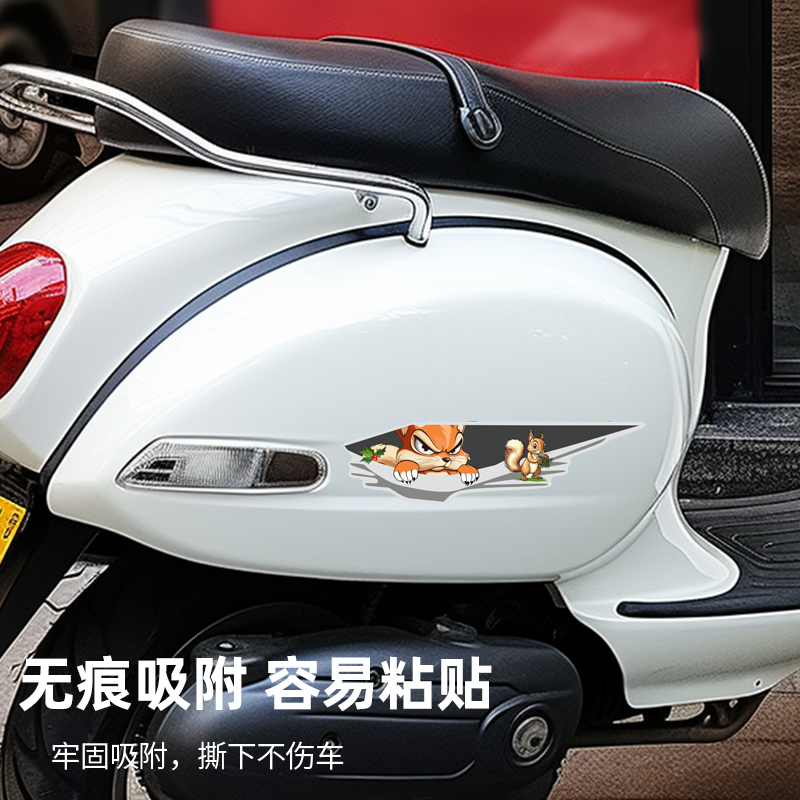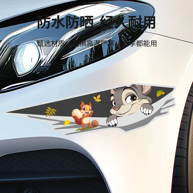 可爱松鼠车贴纸划痕遮挡遮盖车身保险杠车电动摩托车卡通个性 创意