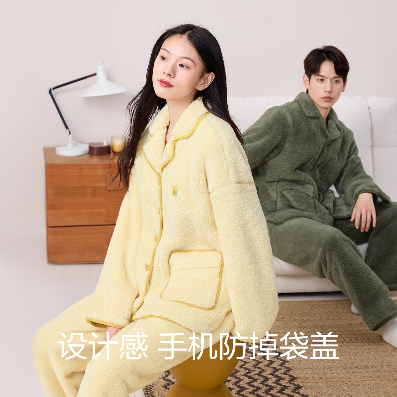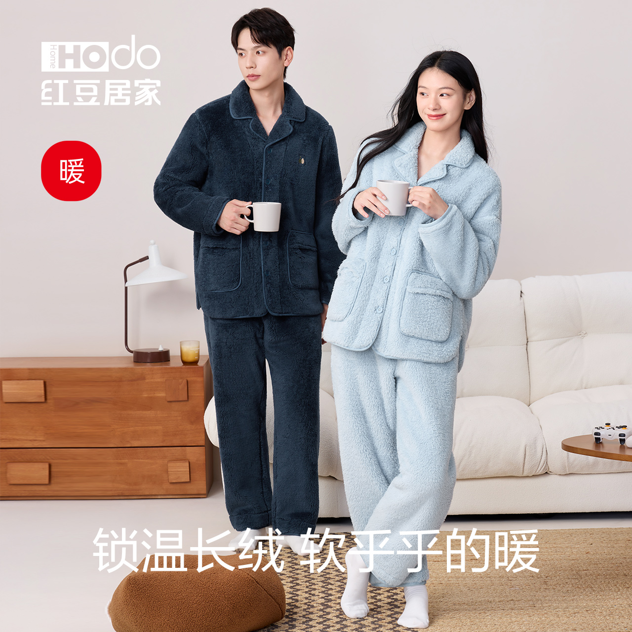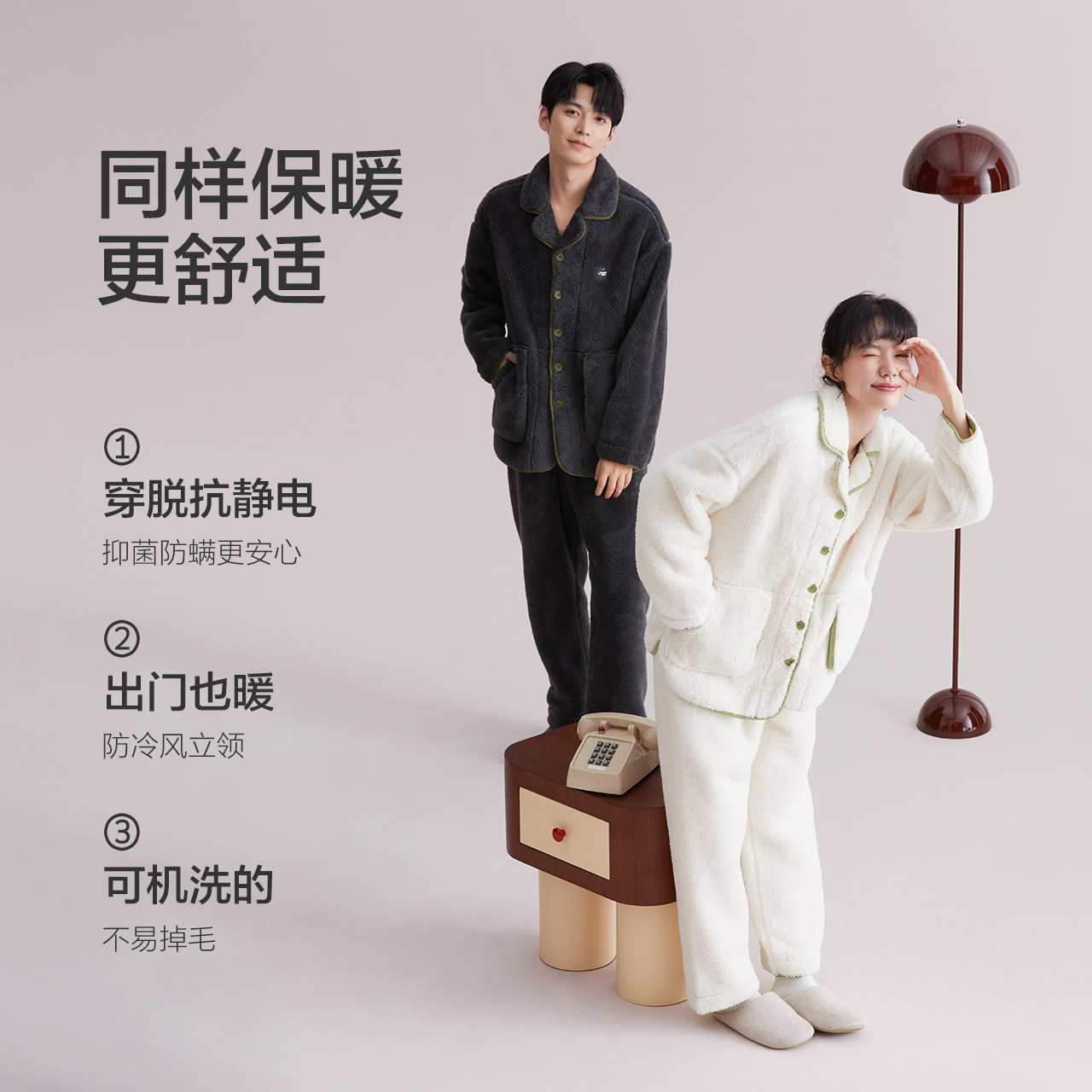 加绒加厚女保暖套装 男士 情侣抗菌秋冬款 红豆居家服珊瑚绒睡衣冬季