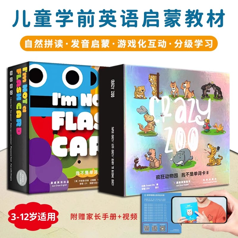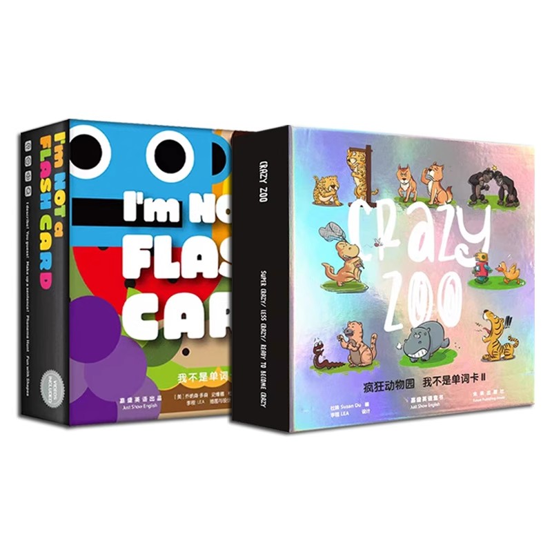 12岁儿童学前英语启蒙教材自然拼读发音启蒙绘本幼小衔接英语学习互动游戏媒体创意单词闪卡 我不是单词卡全2辑疯狂动物园