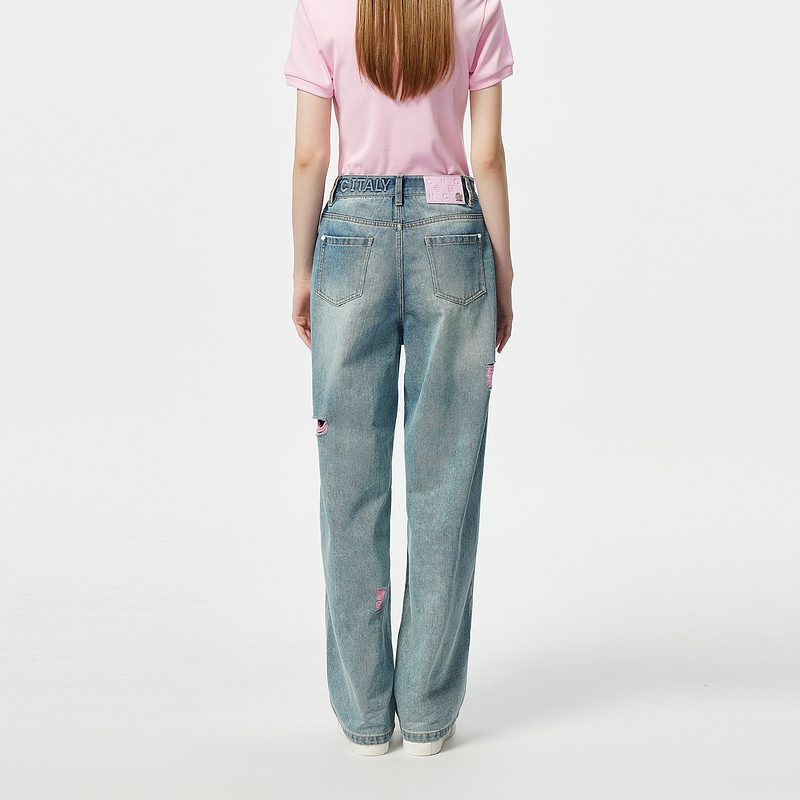 子女 百搭休闲通勤牛仔蓝阔腿长裤 POLOWALK女士直筒牛仔裤 秋冬新款