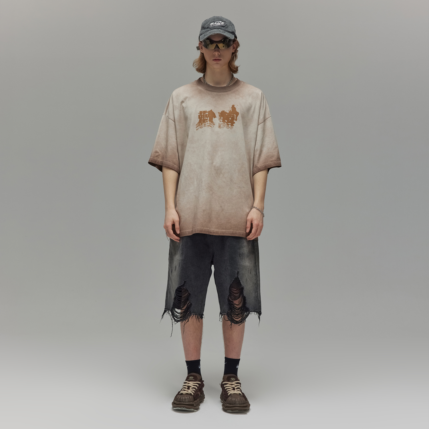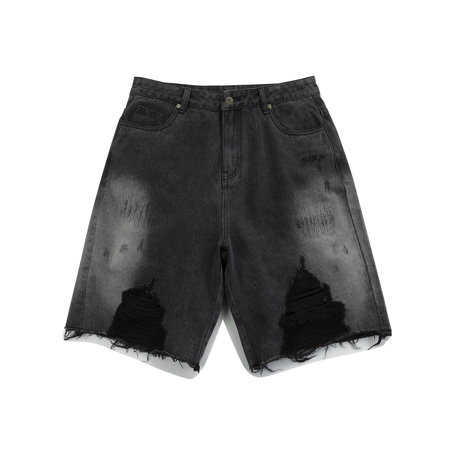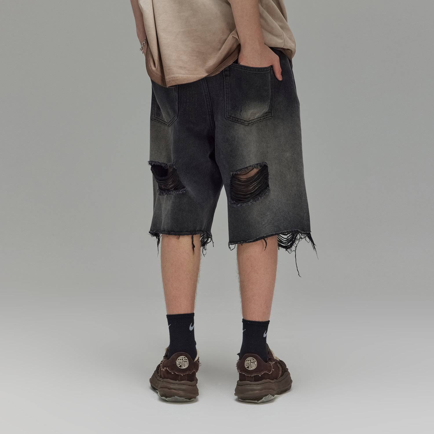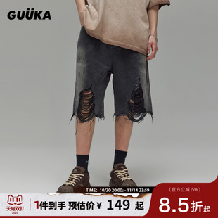 宽松 青少年复古破洞毛边五分裤 GUUKA沙丘废土风牛仔短裤 男夏新款