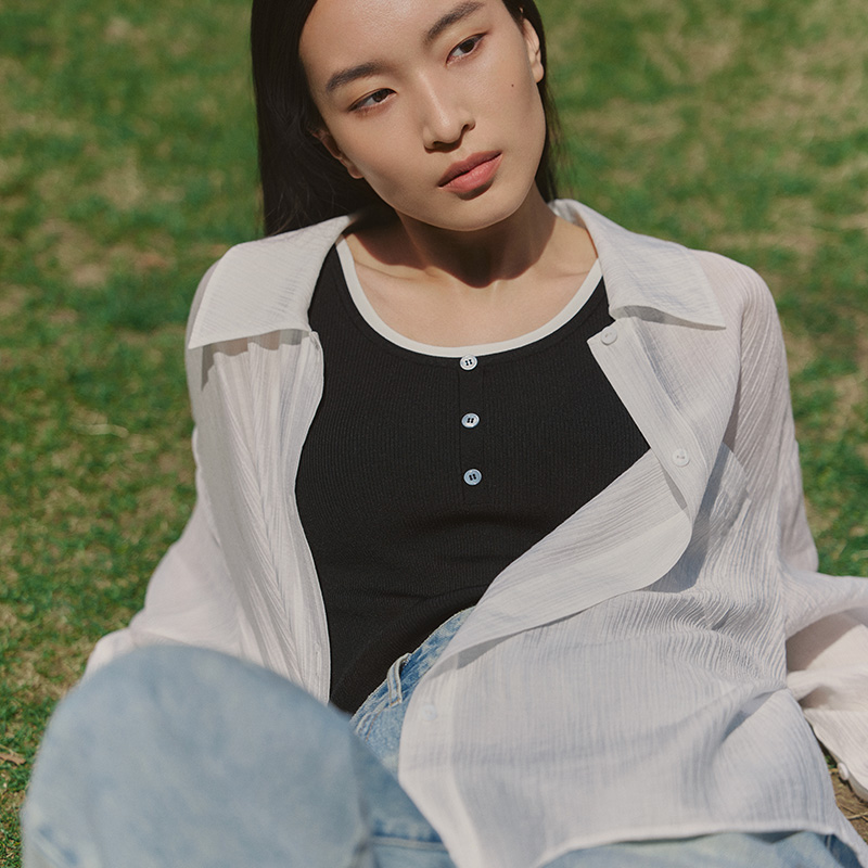 独特宽松淡人长袖 女夏薄款 衬衣BDR2CD0829 百搭衬衫 播商场同款