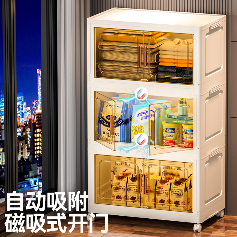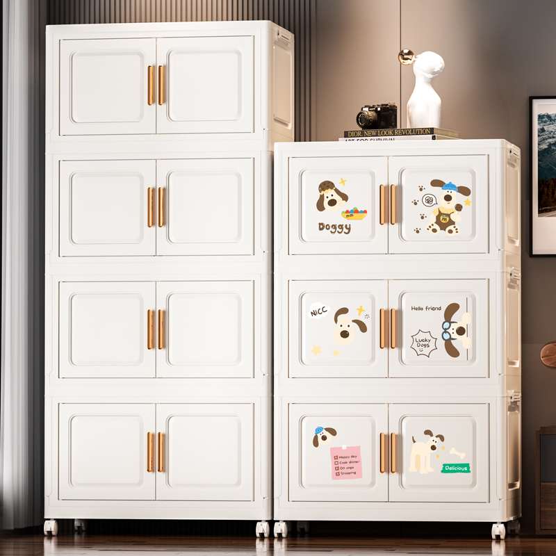 双开门折叠收纳柜储物柜免安装 塑料透明宝宝儿童房多层移动置物柜
