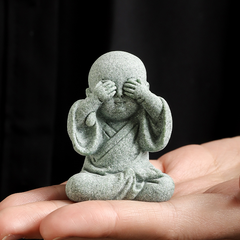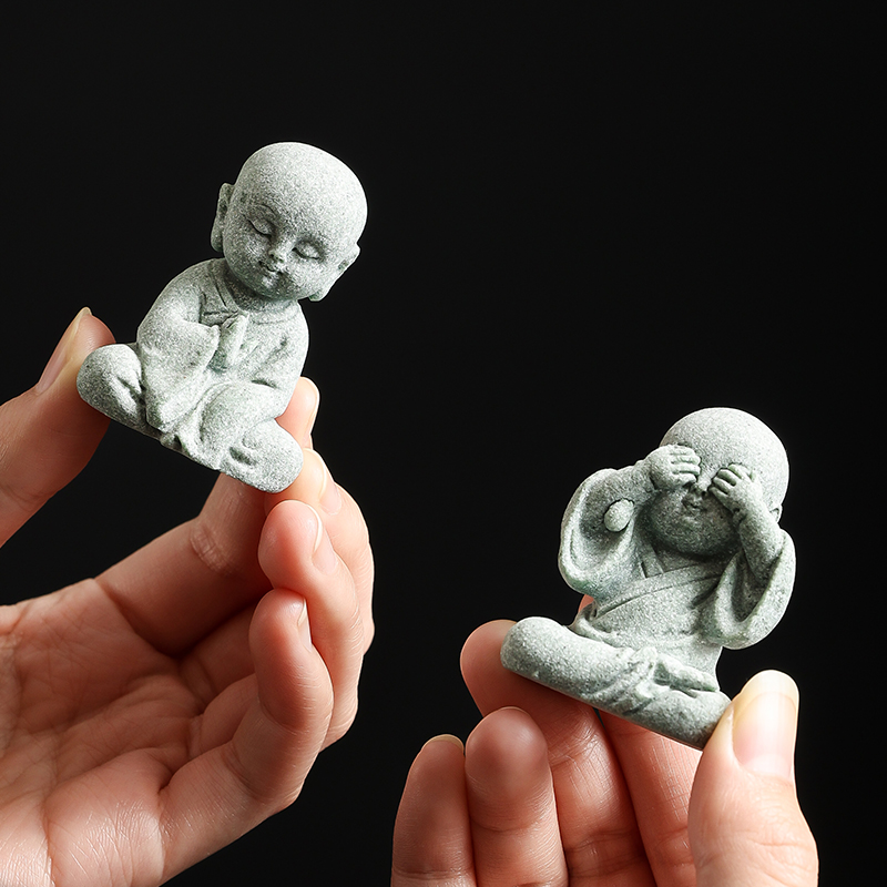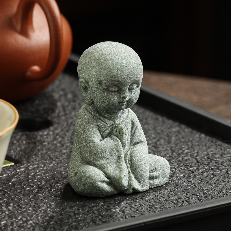 青砂石小和尚茶宠摆件石头微景观鱼缸造景假山盆景客厅禅意茶桌面