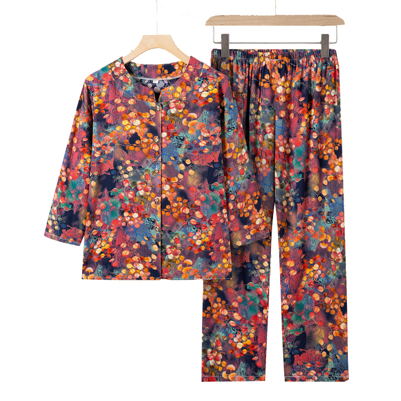 纯棉女士长袖 睡衣新款 秋款 家居服秋冬全棉大码 芬腾春秋季 套装 女款
