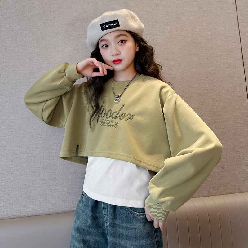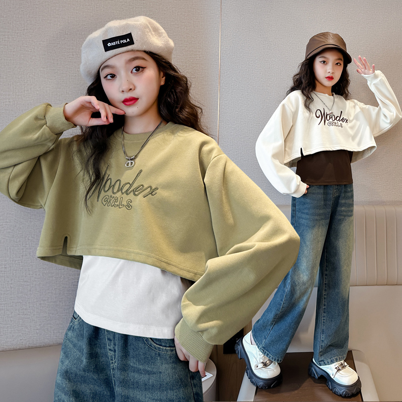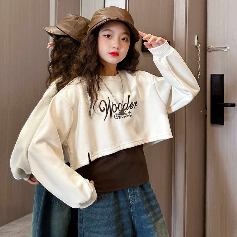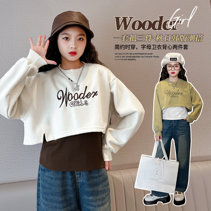 潮 中大童女孩洋气卫衣加背心两件装 小黄鸭女童卫衣春秋款 2025新款