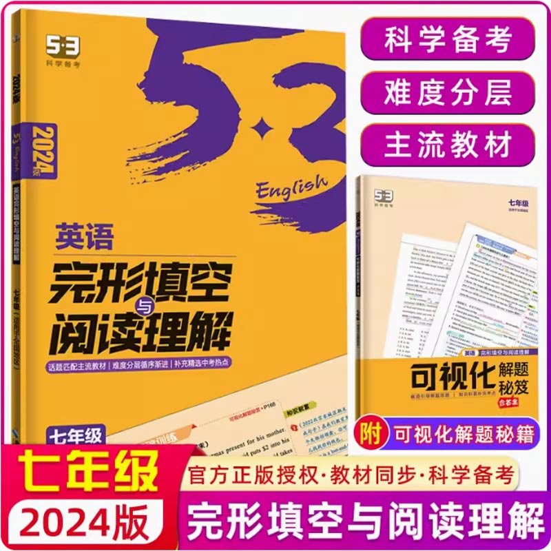 自选2024新版 中考适用于全国各地初中5年中考3年模拟2合1组合训练五三初中英语 53英语完形填空与阅读理解七八九年级