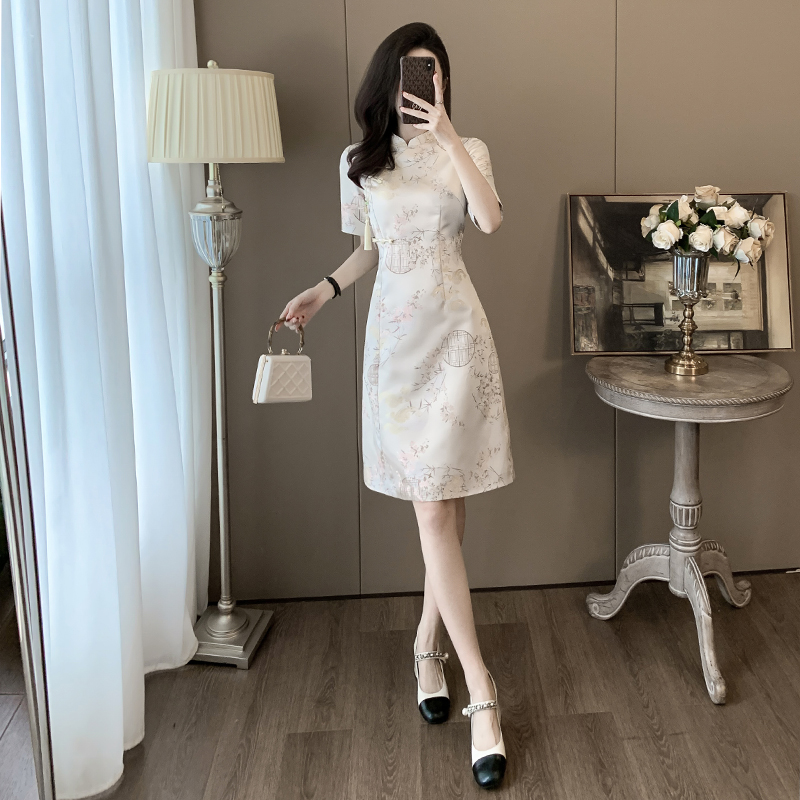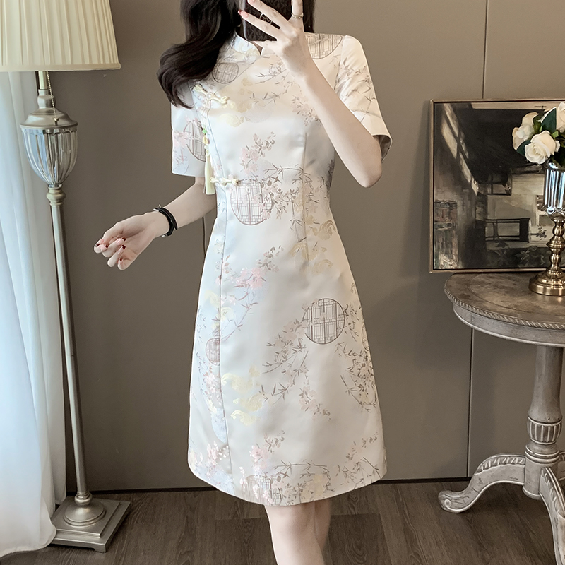 改良旗袍修身 气质短袖 剪裁A字连衣裙 温柔流光高雅新中式 2025夏季