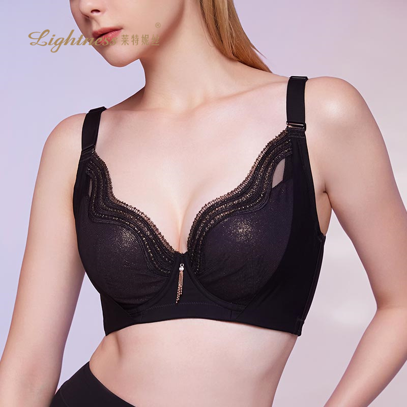 好奇蜜斯小胸聚拢内衣女薄显大无钢圈蕾丝文胸罩套装 防下垂夏 法式