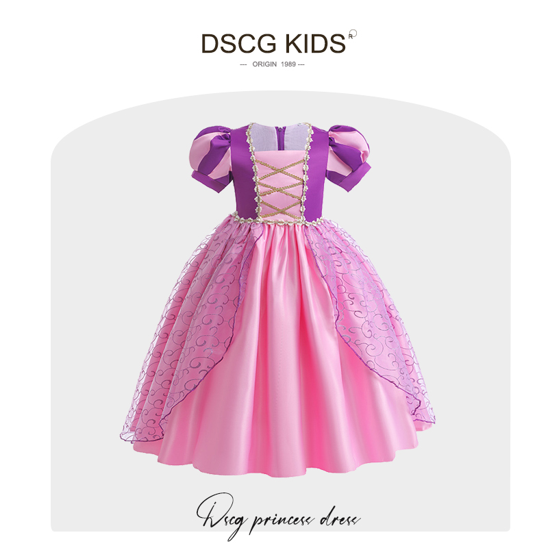 女童苏菲亚公主裙夏装 迪士尼长发公主乐佩COS儿童生日礼服连衣裙
