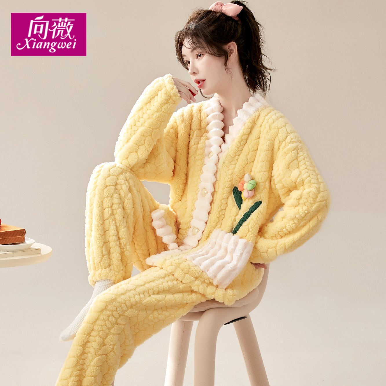 春秋法兰绒家居服 海岛绒套装 轩靓珊瑚绒睡衣女秋冬季 加厚保暖长袖