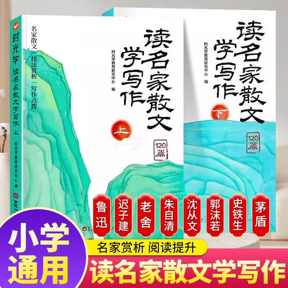时光学读名家散文学写作全套2册小学生一二三四五六年级人教版 语文写作金句优美句子素材摘抄本好词好句好段积累鲁迅老舍叶圣陶书