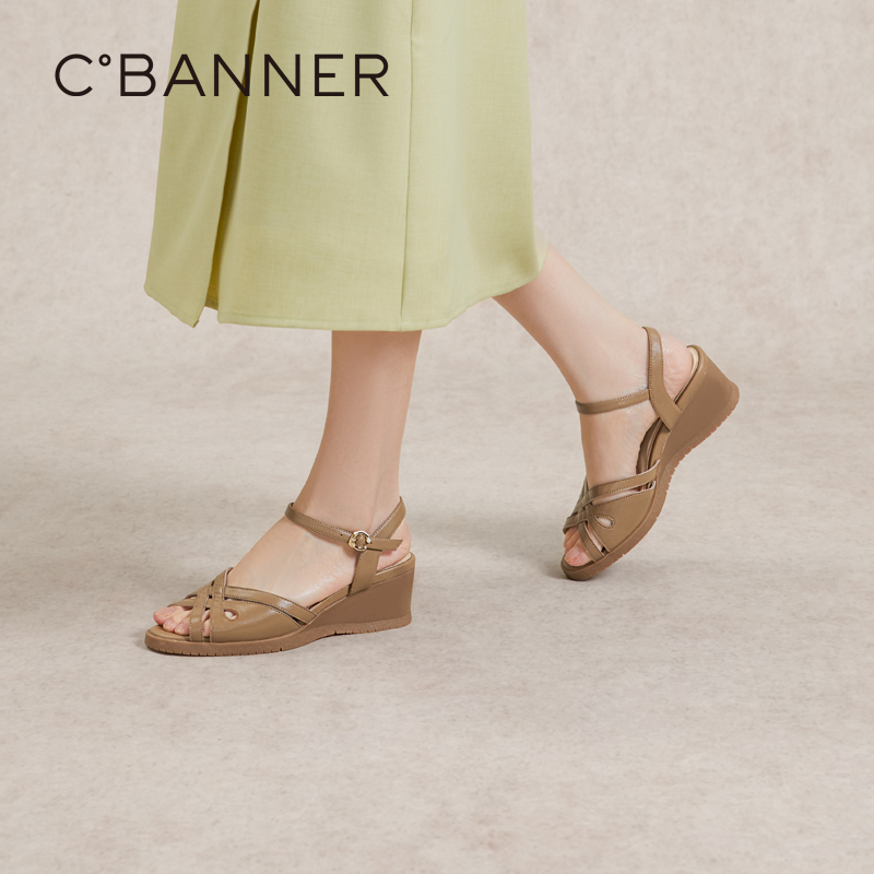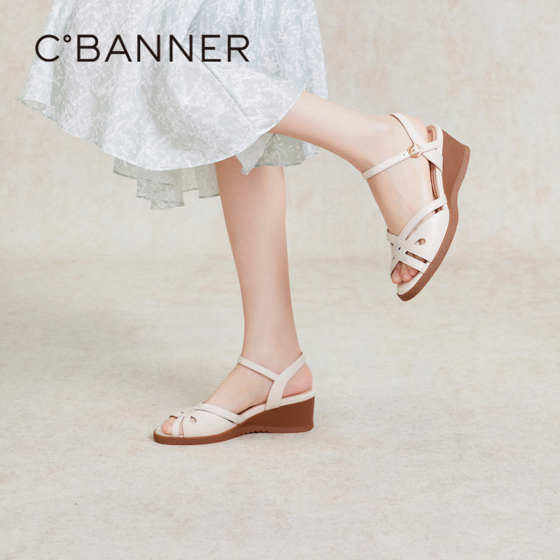 夏季 女款 新款 露趾法式 千百度羊皮坡跟时装 编织通勤凉鞋 凉鞋
