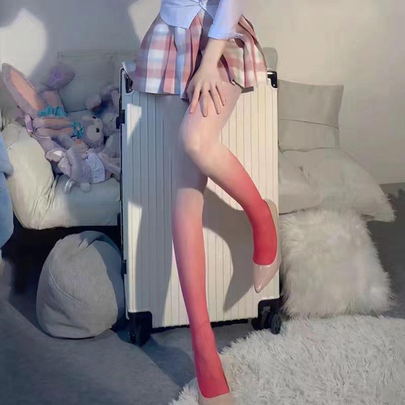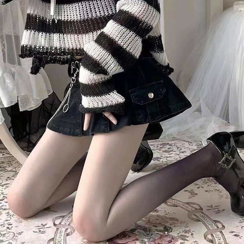 夏 y2k千禧黑丝薄款 渐变色丝袜灰黑色超薄连裤 袜子女黑白性感辣妹