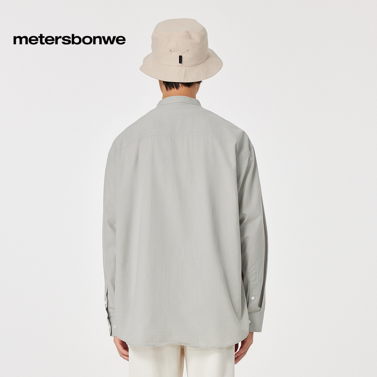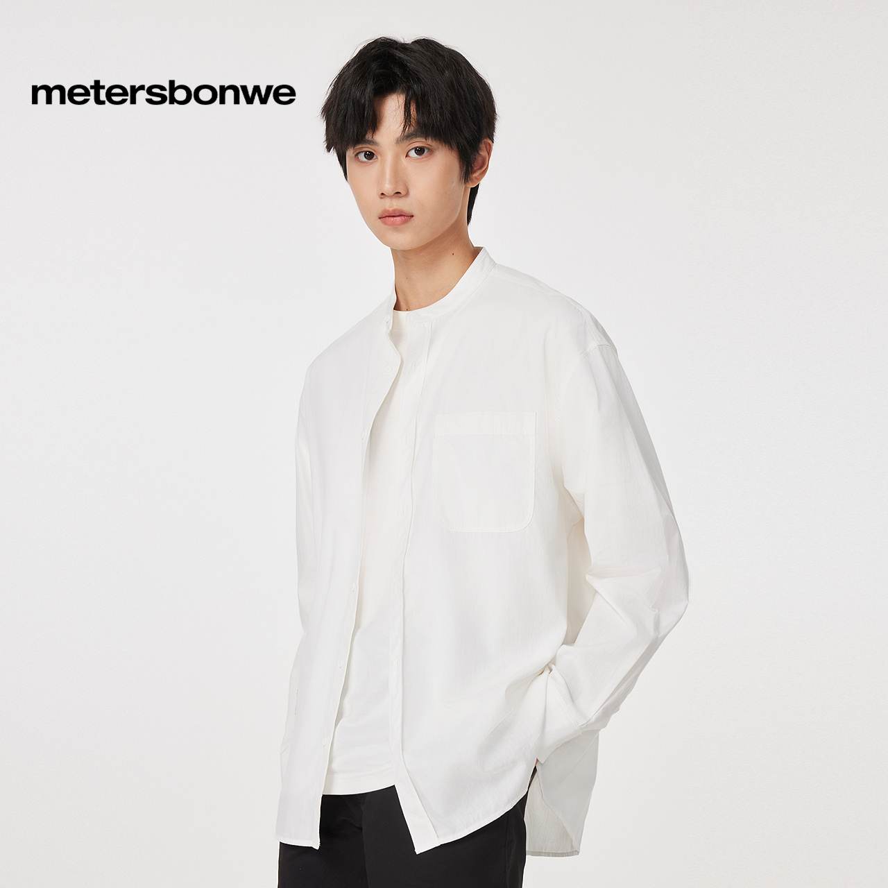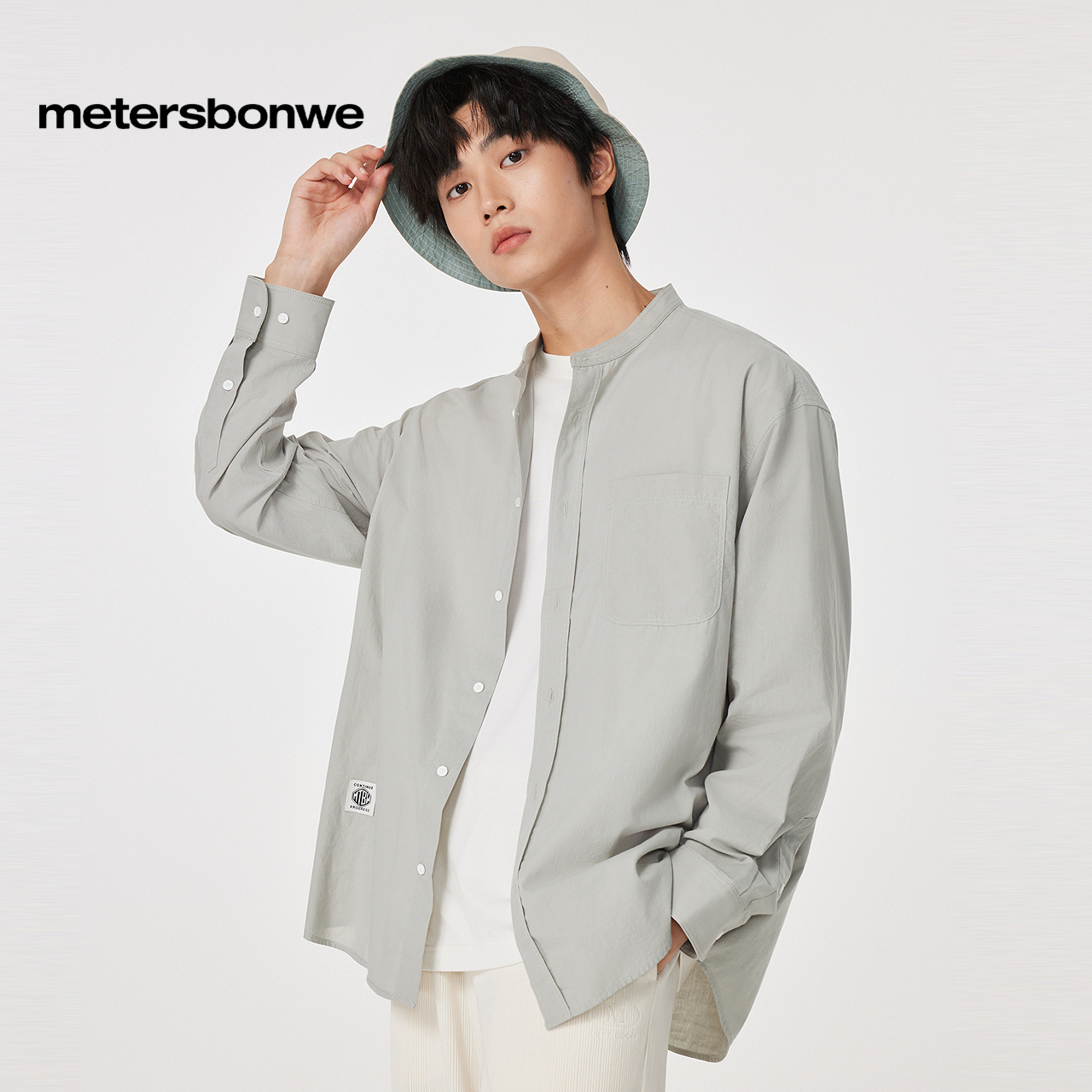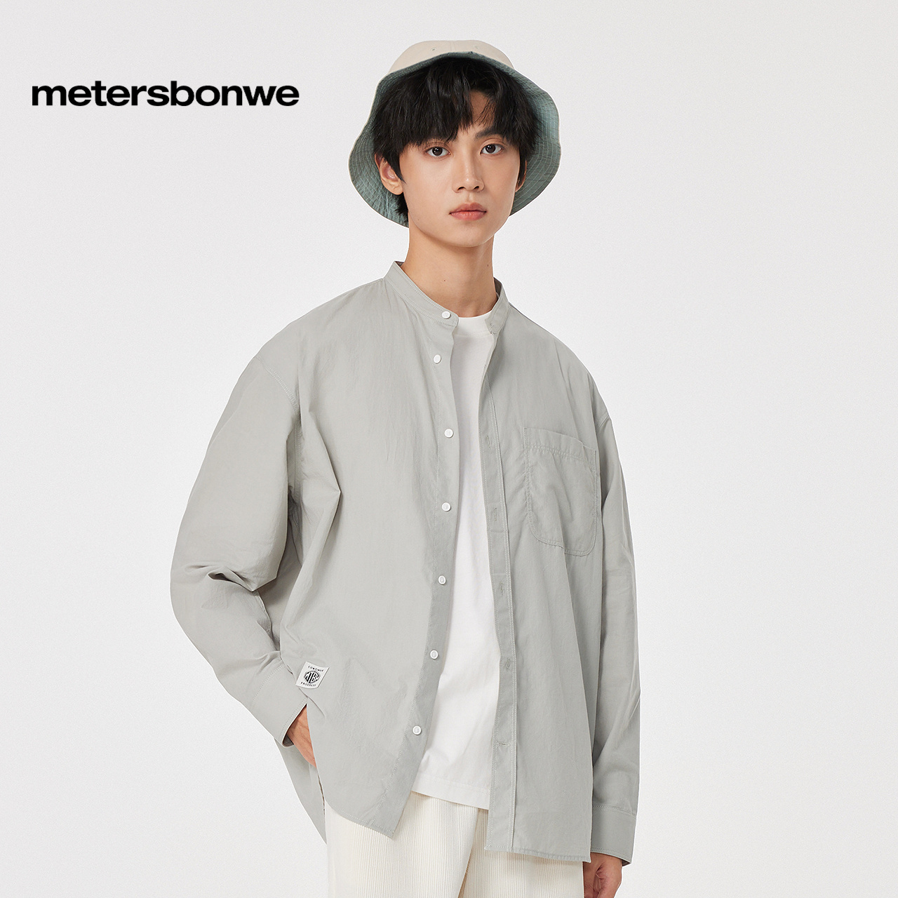 美特斯邦威长袖 男春秋纯棉立领清新宽松休闲舒适简约纯色上衣 衬衫