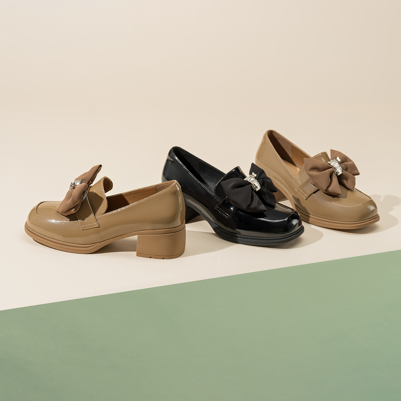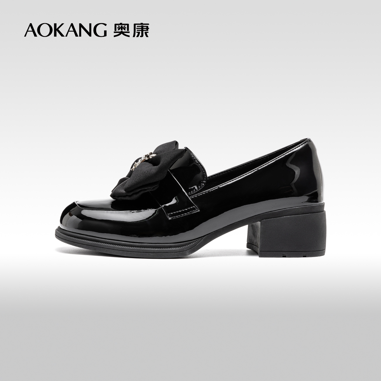 优雅百搭小皮鞋 奥康女鞋 英伦复古风方跟浅口单鞋 新款 春季